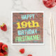 Este divertido diseño de pañuelos de papel con temática de cumpleaños incluye un mensaje como "¡FELIZ CUMPLEAÑOS 19, FIRSTNAME!", donde el nombre se puede personalizar. El fondo está representado por una pared de ladrillo de ladrillo marrón rojizo. El texto del mensaje de personalizable presenta colores como azul, amarillo y verde, y tiene un aspecto inspirado en el de los graffitis pintados. Las servilletas como estas podrían ser usadas en una fiesta de cumpleaños para alguien que está celebrando su decimonoveno cumpleaños. [~Z0000271]