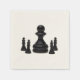 Gran peón negro de ajedrez rodeado por cuatro pequeños reyes de ajedrez aislados en un fondo blanco. Tomando grandeza para la grandeza.