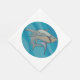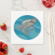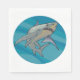 Un gran tiburón blanco en el agua muestra sus dientes. Este diseño parece realmente efectivo en estas servilletas de papel