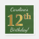Servilleta De Papel Green, Faux Gold 12th Birthday + Custom Name
