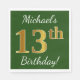 Servilleta De Papel Green, Faux Gold 13th Birthday + Custom Name