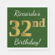 Servilleta De Papel Green, Faux Gold 32nd Birthday + Custom Name