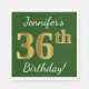Servilleta De Papel Green, Faux Gold 36th Birthday + Custom Name