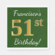 Servilleta De Papel Green, Faux Gold 51st Birthday + Custom Name