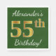 Este sencillo diseño de servilleta de papel muestra un mensaje como "¡55 años de Alexander!", con el "55" en apariencia de oro falso, sobre un fondo de color verde. El nombre se puede personalizar. Podría ser usado en una fiesta de cumpleaños para alguien que está celebrando su 55º cumpleaños. [~Z0000081]