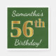 Este sencillo diseño de servilletas de papel muestra un mensaje como "¡56 cumpleaños de Samantha!", con el "56" en apariencia de oro falso, sobre un fondo de color verde. El nombre se puede personalizar. Podría ser usado en una fiesta de cumpleaños para alguien que está celebrando su cincuenta sexto cumpleaños. [~Z0000081]