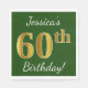 Este sencillo diseño de servilletas de papel muestra un mensaje como "¡El cumpleaños número 60 de Jessica!", con el "60" en falso aspecto dorado, sobre un fondo de color verde. El nombre se puede personalizar. Se podría usar en una fiesta de cumpleaños para alguien que esté celebrando su sexagésimo cumpleaños. [~Z0000081]