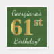 Servilleta De Papel Green, Faux Gold 61st Birthday + Custom Name