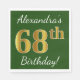 Este sencillo diseño de servilletas de papel muestra un mensaje como "¡El 68º cumpleaños de Alexandra!", con el "68º" en un falso aspecto dorado, en un fondo verde de color. El nombre se puede personalizar. Se podría usar en una fiesta de cumpleaños para alguien que esté celebrando su sexagésimo octavo cumpleaños. [~Z0000081]