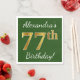 Este sencillo diseño de servilletas de papel muestra un mensaje como "¡77 cumpleaños de Alexandra!", con el "77" en apariencia falsa de oro, sobre un fondo verde de color. El nombre se puede personalizar. Podría ser usado en una fiesta de cumpleaños para alguien que está celebrando su cumpleaños setenta y siete. [~Z0000081]