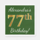Servilleta De Papel Green, Faux Gold 77th Birthday + Custom Name