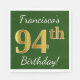 Servilleta De Papel Green, Faux Gold 94th Birthday + Custom Name