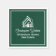 This professional realtor paper napkin is custom made with your real estate company name under the modern cursive script for an open house. This chic green realty business party decor features a house logo image for home builder or realty agent company marketing.