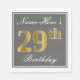 Servilleta De Papel Gris elegante, oro falso 29 cumpleaños; nombre per