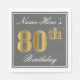 Servilleta De Papel Gris elegante, oro falso 80 cumpleaños; nombre per