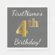 Servilleta De Papel Gris, Faux Gold 4Cumpleaños + Nombre Personalizado