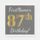 Servilleta De Papel Gris, Faux Gold 87th Birthday + Nombre personaliza