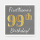Servilleta De Papel Gris, Faux Gold 99th Birthday + Nombre personaliza