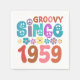 ¡Una idea divertida de regalo de cumpleaños para hombres y chicas hippie! Presenta un colorido tipo de letra psicodélico retro con símbolos de paz y flores.