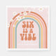El groovy de inspiración retro Six es una servilleta de fiesta de cumpleaños Vibe 6º con arcoiris de estilo hippie, daisies y fuentes boho y colores.