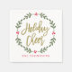 Las servilletas de las vacaciones redondas festivas presentan un texto antiguo moderno con el guión "Holiday Cheer" de oro, enmarcado por una corona de hojas verdes y follaje de bayas rojas con un texto en monograma rojo personalizado debajo.
