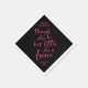 La elegante servilleta de graduación con un guion de pincel rosa de la cita "aunque sea pequeña es feroz" de A MidSummer Night's Dream de William Shakespeare con un fondo negro. Personalízalo reemplazando el texto del marcador de posición. Para obtener más opciones, como cambiar el tipo de letra, el tamaño/color del texto o el espaciado entre letras, haga clic en el botón "Personalizar". *Tenga en cuenta que la marca de agua Zazzle que aparece en la vista previa del zoom NO aparecerá en el producto impreso final. © Rosewood y Citrus