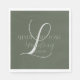 Servilleta De Papel Guion Romántico Verde Sage Inicial Boda