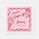 Ha sido envuelta en un bosquejo fronterizo ondulado ducha de novia monogramada plantilla de servilletas impresas, helado con una cereza en la parte superior ondulada de la cinta de borde coqueta ducha de novia toallas personalizadas nombre servilletas, servilletas de ducha de matrimonio de coqueta roja y rosa, ducha de novia casera decoración personalizada de mesa