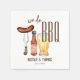 Hacemos barbacoa de barbacoa parejas de duchas de novias favores monogramados de plantilla de servilletas de papel personalizado. Diseño sencillo con vidrio de cerveza, salchichas y una botella de salsa caliente decoración de la mesa de ducha a la barbacoa.