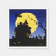 Diseño de Halloween con castillo espeluznante, decoración de cementerio en luna llena