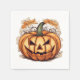 Digitales Design von einem großen Kürbis. Diese Kombination aus Kürbis, Grimasse und Halloween-Banner ist eine beliebte Dekoration während der Herbst- und Halloween-Zeit. Ein klassisches Symbol für die gruselige Jahreszeit.