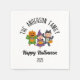 Agrega un toque festivo a tus celebraciones de Halloween. El diseño presenta una bonita decoración de Halloween con niños pequeños en traje. Vestido y haciendo truco o tratando. ¡Esto es perfecto para bendecir a tus amigos por fiestas de Halloween y bolsas de regalo! ¿El punto fuerte? ¡Un nombre familiar personalizado! Añada el nombre de su familia al diseño, como "La familia Smith", creando una característica única y reflexiva de vacaciones que es verdaderamente suya.