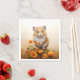 Estas servilletas de papel muestran una encantadora imagen de un hámster sirio parado en sus patas traseras entre flores naranjas. Las servilletas son ideales para cualquiera que ame a los hamsters.