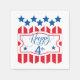 Esta servilleta presenta un divertido diseño del Día de la Independencia de estrellas azules, rayas rojas y un hermoso texto de escritura que dice 'Feliz 4'. ¡Perfecto para los fiestas de la puerta trasera en julio! Busque ID138 para ver productos coincidentes, incluyendo placas de papel, tazas de papel y más.