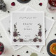 Estas elegantes servilletas de boda con calavera y rosa góticas Hasta que la Muerte nos Separe presentan un fondo suave gris pálido (casi blanco) con “Hasta que la Muerte nos Separe” en la parte superior, los nombres de la novia y el novio centrados, y la fecha del evento debajo para un diseño limpio y equilibrado.