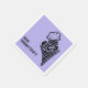Tome Postre Primero en una Servilleta de Lavanda con un adorable dibujo estilo grabado en madera de un delicioso cono de helado.