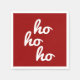 Ilustracion de diseño de texto Ho-ho-ho con letras blancas sobre fondo rojo para Navidades. Es posible cambiar el color de fondo y añadir uno diferente al diseño con su elección.