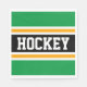 Este diseño deportivo y atlético presenta texto HOCKEY en negrita dentro de una banda central negra amplia resaltada con rayas de carreras blancas y amarillas contra rayas exteriores de color verde brillante. El texto de este diseño se puede personalizar.