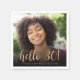 Esta servilleta personalizado de 30 años muestra la foto personalizada, nombre y cumpleaños del invitado de honor, junto con las palabras "¡hola 30!" en un elegante guión de caligrafía de color dorado. Una pantalla oscura ayuda a hacer que el texto aparezca. ¡Una gran manera de celebrar a alguien que cumple treinta años!