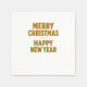 Fun festive napkins with "Merry Christmas and a Happy New Year "on it. Lettering in a cheery red and green geometric pattern outlined in gold. Great for holiday parties when getting together with family or friends.