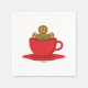 Un hombre de jengibre relajándose en una taza roja de chocolate caliente. Ideal para los adictos al chocolate caliente, al café y al té.