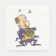 Un hombre tocando música en un cuerno francés. Este diseño parece realmente efectivo en estas servilletas de papel