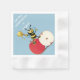 Una linda abeja sostiene un bastón de miel que gotea con miel. El texto dice Shana Tova en inglés y en hebreo, L'Shana Tova. Puede personalizar fácilmente esta tarjeta cambiando el color de fondo y/o cambiando el texto en inglés o eliminando el hebreo.