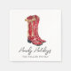 Estas servilletas fiestas presentan un retrato acuarela de un par de botas de vaquera rojas con la leyenda "feriados felices".
