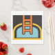 Un icono de piscina con escalera y agua de piscina. Este diseño parece realmente efectivo en estas servilletas de papel