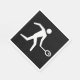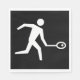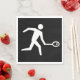 Icono de jugador de squash en blanco sobre fondo negro. Este diseño parece realmente efectivo en estas servilletas de papel