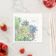 Las fuentes únicas, los suculentos coloridos coloridos coloridos y los fondos purpurinoso en un verde suave primavera son los puntos fuertes de estos productos bodas de mezcla y coincidencia. Esta hermosa servilleta de papel tiene un gran borde de esquina de follaje sobre un fondo blanco con una plantilla provista para editar las iniciales de la novia y del novio y la fecha del boda. Busque ID515 para ver todos los productos coincidentes de este conjunto.