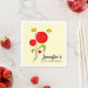 Toallas de fiesta de papel para un cumpleaños u otro evento. Diseñado con un ilustracion caprichoso con varias flores rojas con grandes corazones adosados a un tallo verde. Hay 2 mariposas amarillas cerca. Fondo amarillo pálido.