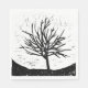 Huella de lino blanco y negro de la silueta de un árbol otoñal.