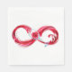 Símbolo infinito de flujo continuo de vino tinto vertiendo en vidrio de vidrio sobre fondo blanco.